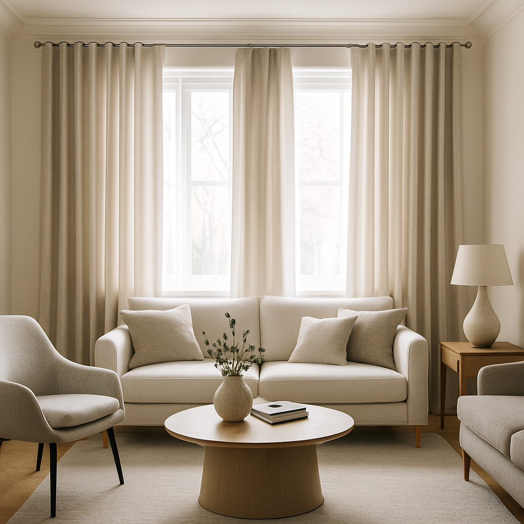 Pour un look épuré, optez pour des rideaux en lin clair ou en coton blanc avec une tringle wave en métal brossé. Cela créera une atmosphère lumineuse et aérée.