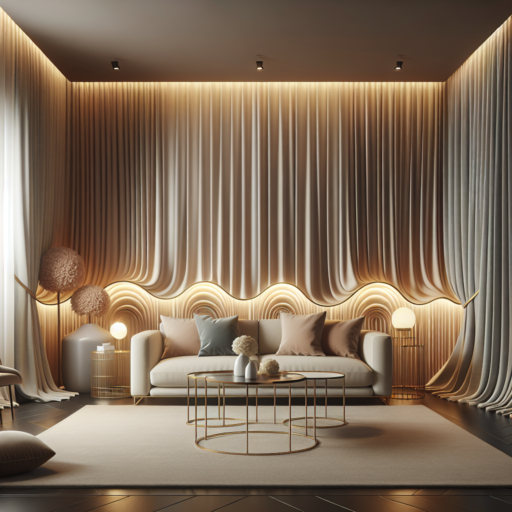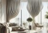 - Salon Chic : Utilisez des tringles wave pour suspendre des rideaux en lin gris clair qui tombent jusqu’au sol, créant ainsi un look élégant et moderne.